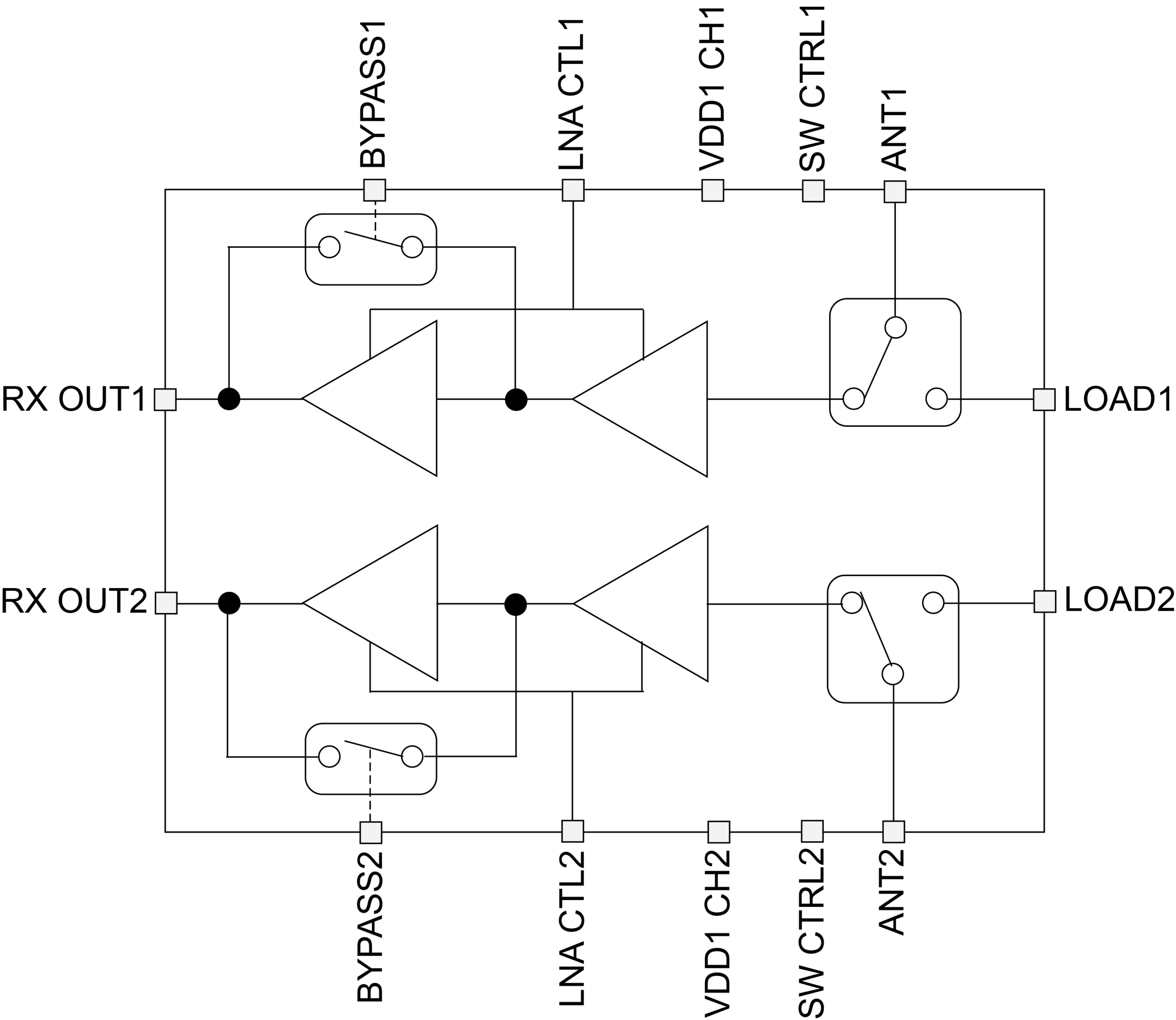The PE53231 is a highly integrated front-end module targeted for wireless infrastructure applications such as TDD macro/micro base stations and MIMO applications. It is designed for use at the front end of a receiver chain for TDD-based systems and is ideally suited to 5G solutions or small cell applications. The dual-channel receiver integrates two independent LNAs with bypass function and a high-power switch. The PE53231 can be utilized across the 3.45 GHz–4.2 GHz frequency range with internal impedance matching networks. This receiver utilizes pSemi’s UltraCMOS® SOI technology which supports input RF power signal up to 20W average power, assuming 9 dB PAR and a very low noise figure, excellent linearity and very low power consumption. Each channel is controlled individually within the selected frequency band, which allows more flexibility in the system design.